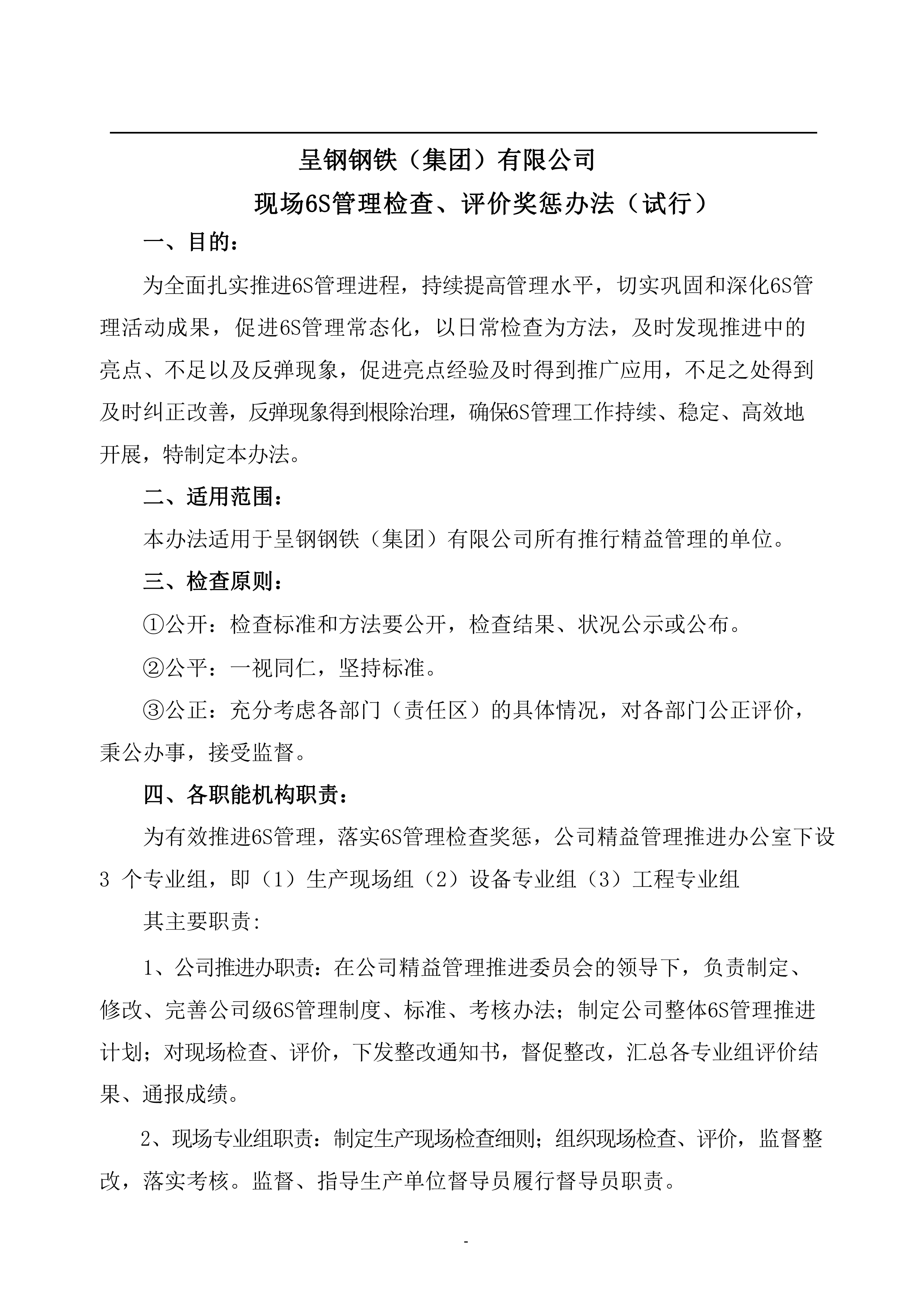 現(xiàn)場(chǎng)6S管理檢查、評(píng)價(jià)獎(jiǎng)懲辦法(試行)